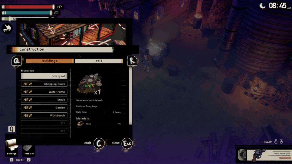 Once at the ranch, you can build stations to craft new items. Resource-based crafting is always satisfying, and being able to lay out your base however you like adds a welcome layer of creativity and ownership.
