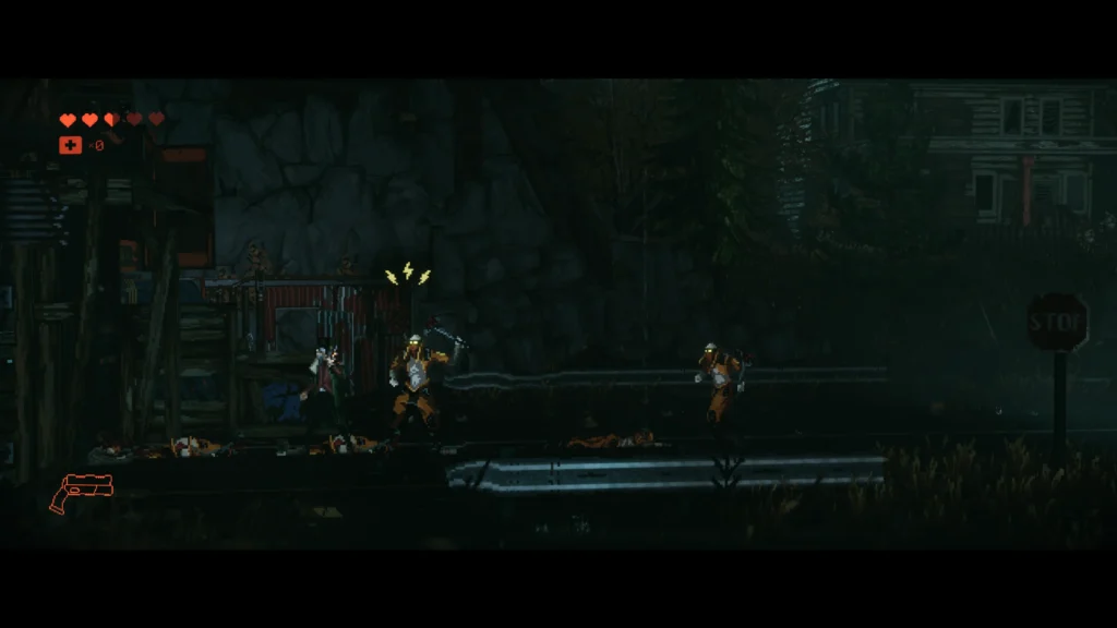 Beyond its striking 2D pixel art style, the animation work stands out. Movement, combat, jumping, and shooting all feel polished and responsive. The sound design during fights complements the action well, and the soundtrack matches the game’s tone nicely.